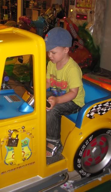 Att shoppa är inte speciellt roligt, så Alex fick roa sig med åka lastbil en stund.